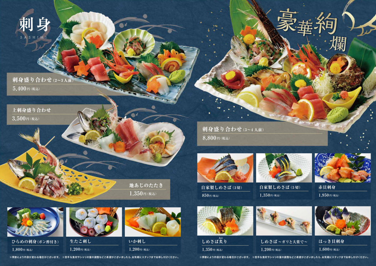 各メニューをタップ(選択)するとメニューを拡大してご覧いただけます